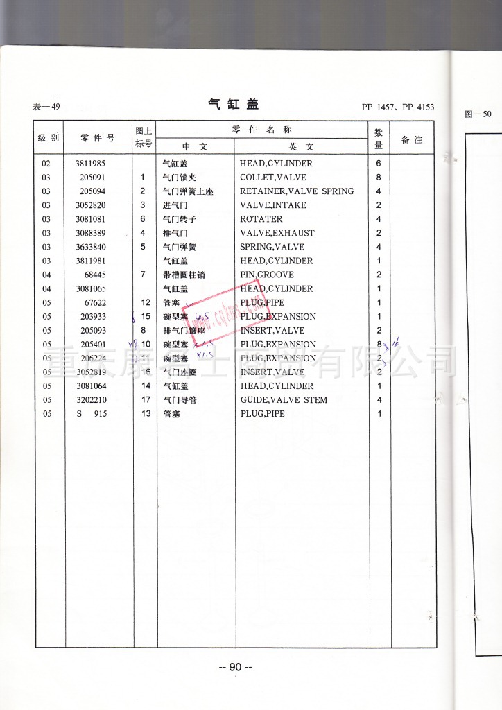 - 915-020-085康明斯KTA19-G3/G4零件图册3166155第090页汽缸盖表
