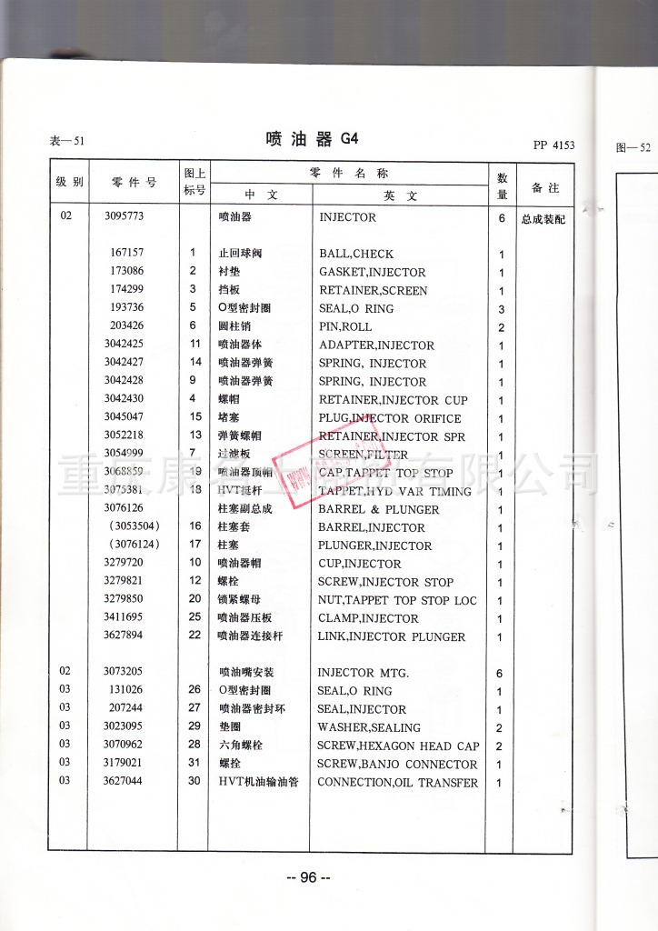 - 915-020-091康明斯KTA19-G3/G4零件图册3166155第096页喷油器G4表