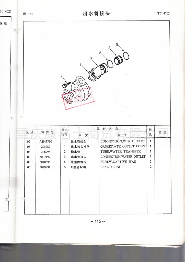 - 915-020-110康明斯KTA19-G3/G4零件图册3166155第115页出水管接头