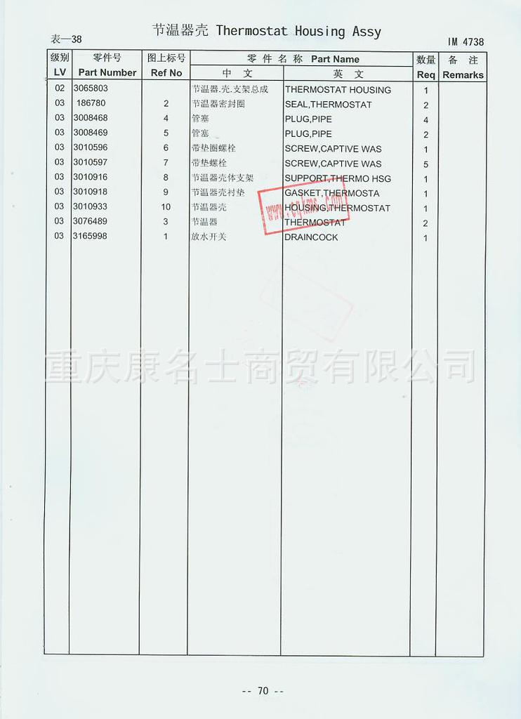 - 915-123-066康明斯KTA19-G4(M)零件图册3166166第070页节温器壳表