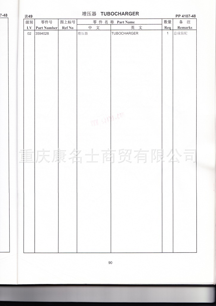 915-016-080康明斯KTA19-M(D)零件图册4915170第090页增压器表