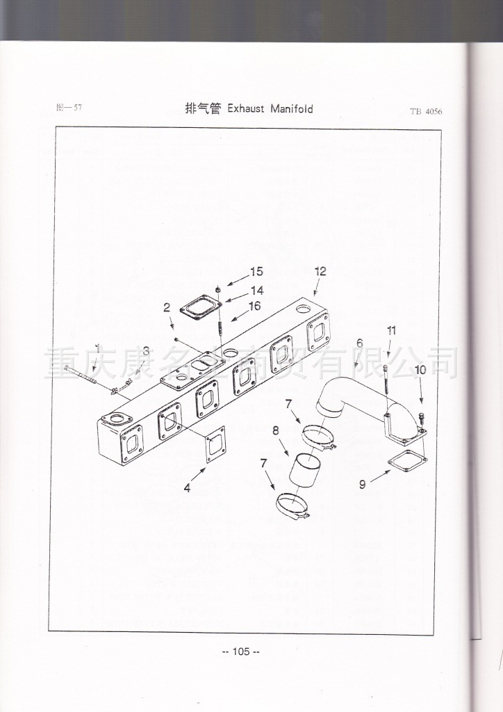 - 915-021-097康明斯KTA19-M零件图册3166163第106页排气管表