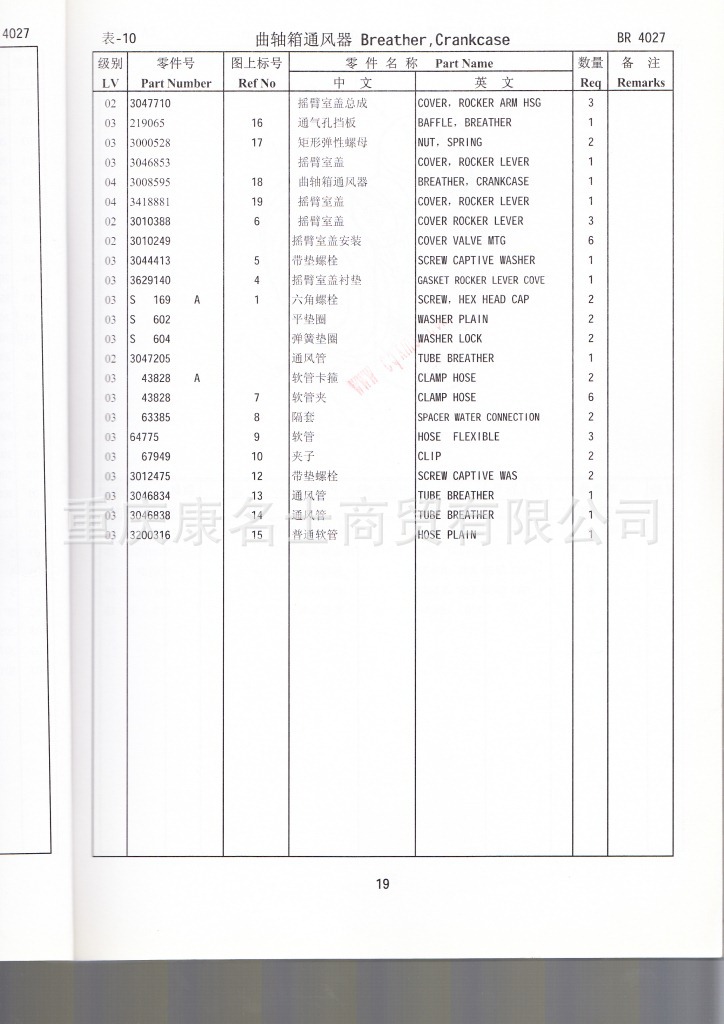 915-015-021康明斯KTA19-P600零件图册4061291第019页曲轴箱通风器表