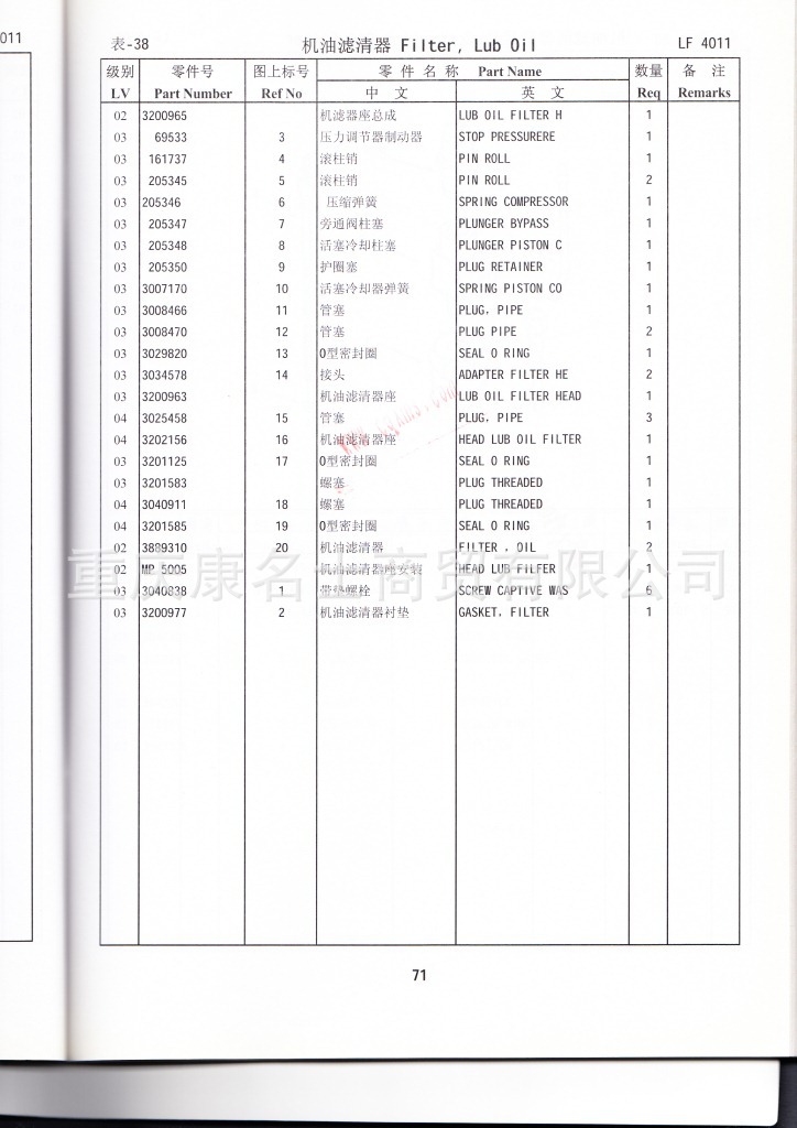915-015-070康明斯KTA19-P600零件图册4061291第071页机油滤清器表