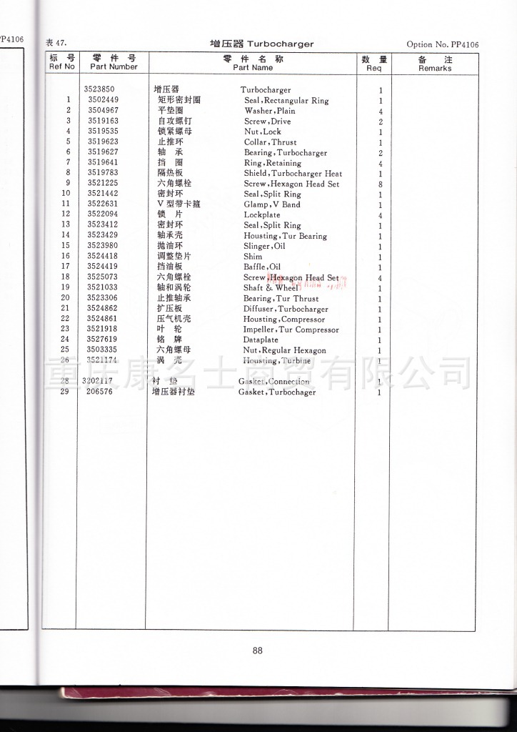 915-018-085康明斯KT(A)19-G零件图册3166123第088页增压器表