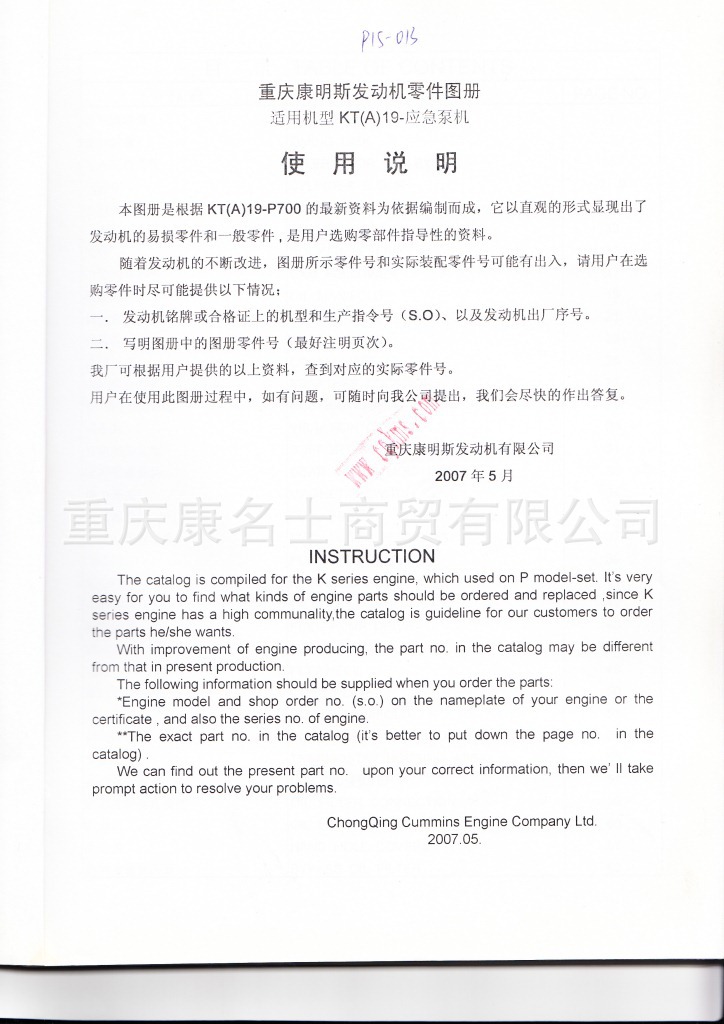 915-013-099康明斯KT(A)19零件图册4915148封面2使用说明图表