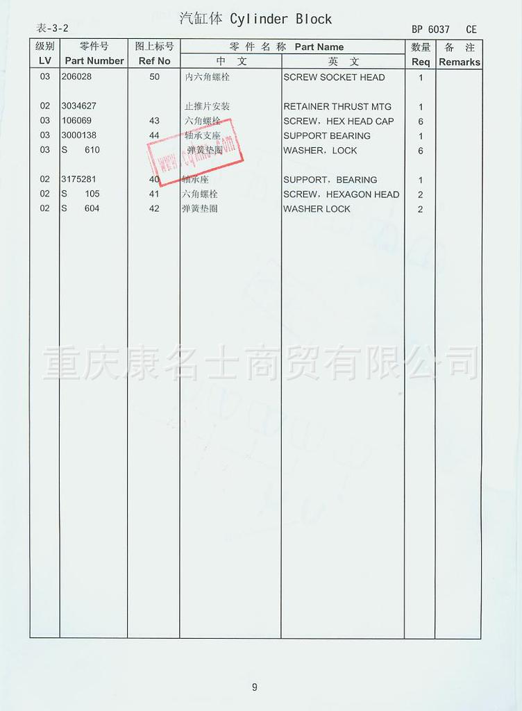 - 915-121-009康明斯KT38-M800零件目录4061279第009页汽缸体表