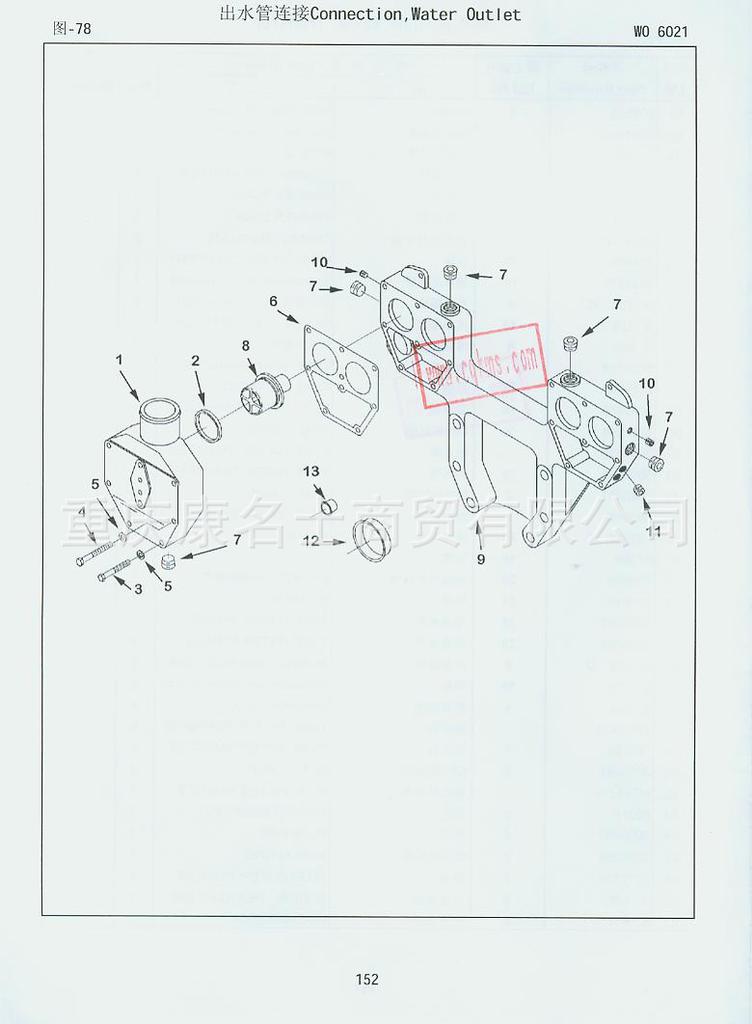 915-121-137康明斯KT38-M800零件目录4061279第152页出水连接管图