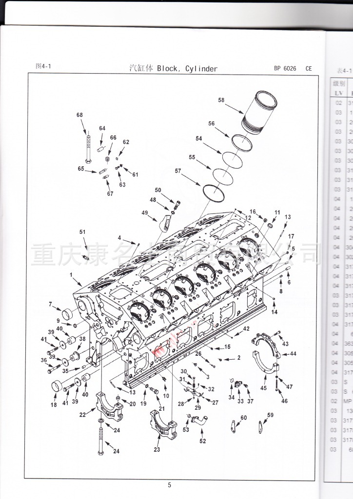 - 915-027-008康明斯KTA38-C1200零件图册4915128第008页汽缸体表