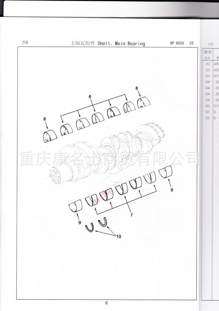 - 915-027-009康明斯KTA38-C1200零件图册4915128第009页主轴瓦组件