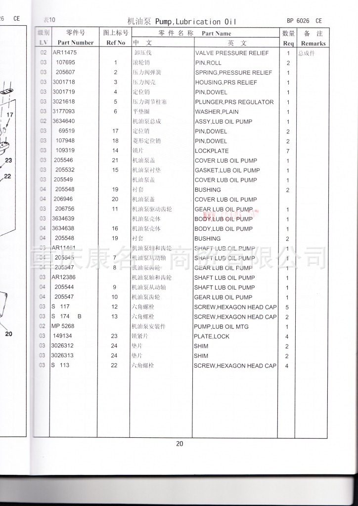 KTA38-C1200机油泵 915-027-019康明斯KTA38-C1200零件图册4915128第020页机油泵表 零件图册的编号:915-027 零件图册的零件号:4915128 零件图册的发动机机型:KTA38-C1200 零件图册的页码:第020页 这一页的主要内容:机油泵 请您仔细对照安装图和表,找到你需要的配件的安装位置与安装图中的的编号,并且从表中确认对应的零件号和零件名称。再一次提醒您,随着技术的进步和零件号的替换,你需要的配件的零件号可能与图表中的零件号并不完全相同,我们只能给你介绍当前主机厂装机的对应的正确的零件号,请你与在线的销售人员反复核对实物图片的形状和相关技术尺寸,避免买到用不上的配件。