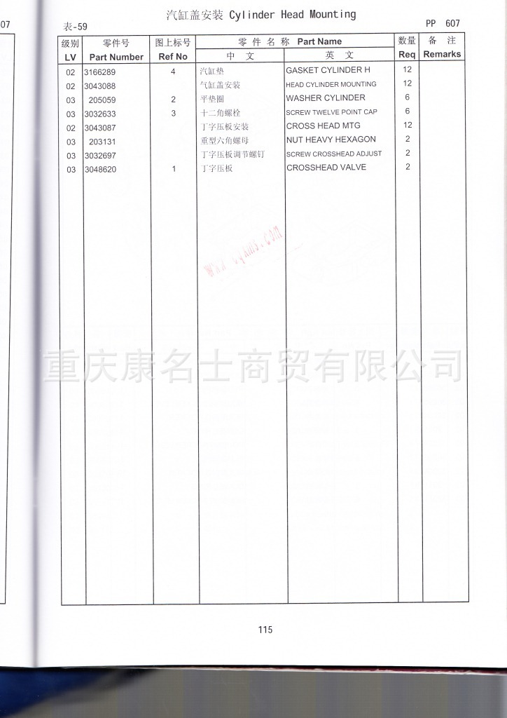 915-010-107康明斯KTA38-P900零件图册4061273第115页汽缸盖安装表