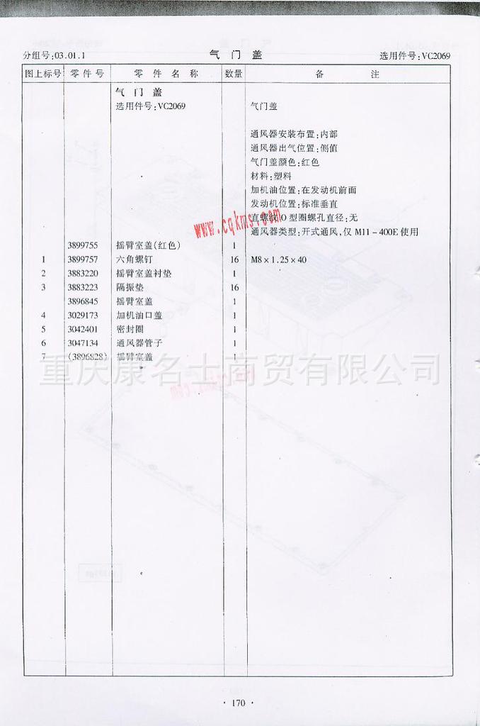 - 915-001-161康明斯ISM零件图册3166144第170页气门盖表