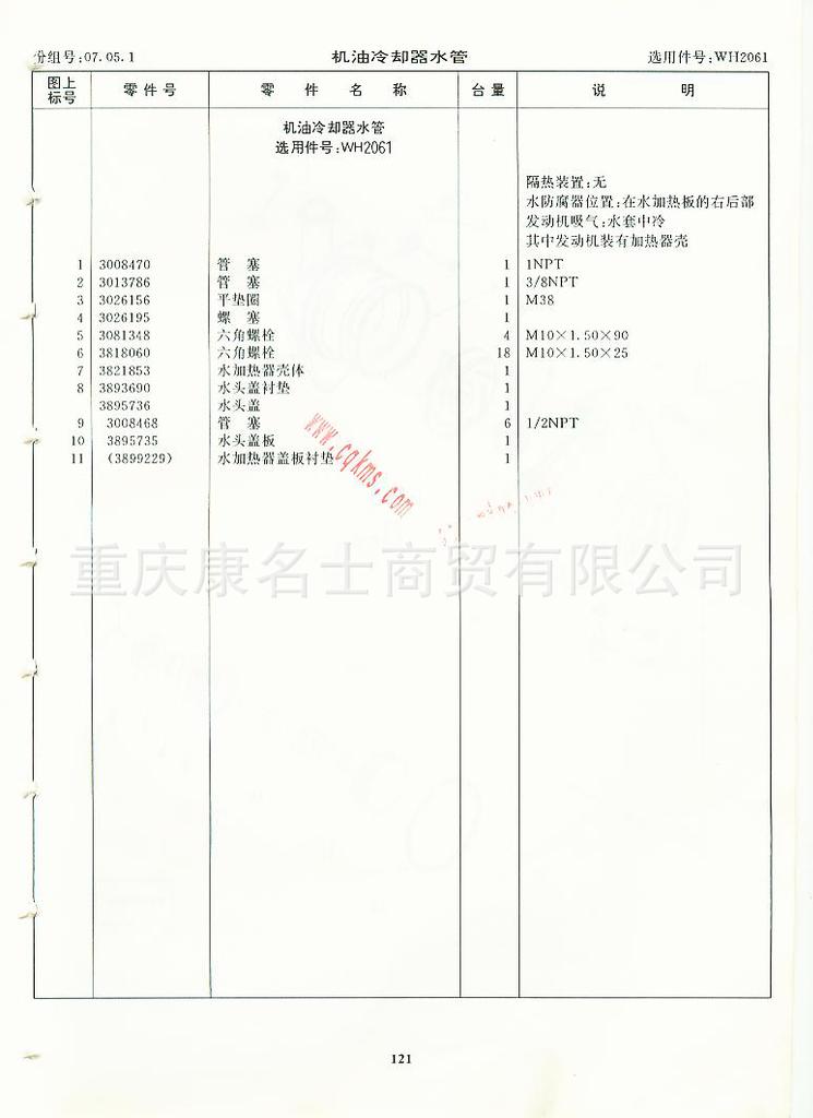 - 915-045-116康明斯M11发动机零件图册3166127第121页机油冷却器水