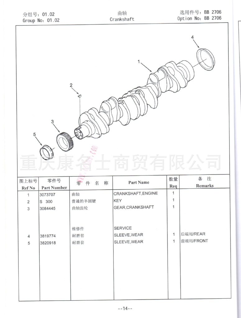 - 915-044-014康明斯M11零件图册4061351第014页曲轴图表