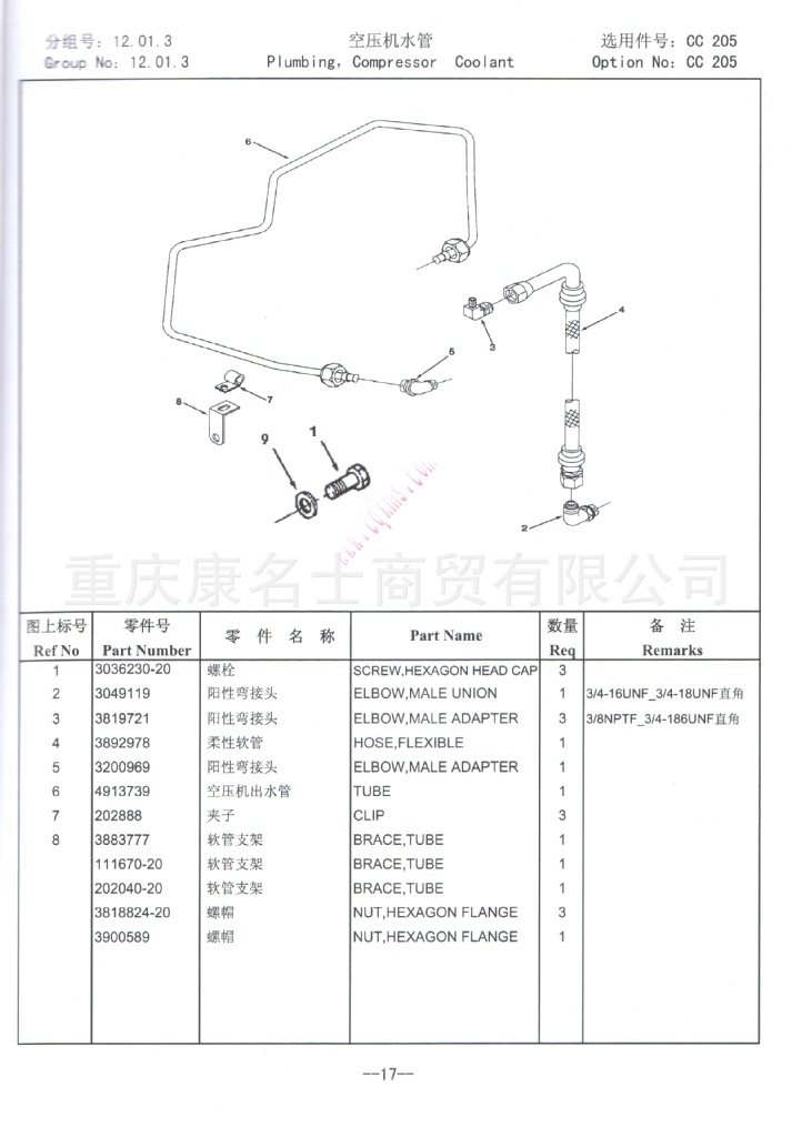 - 915-044-017康明斯M11零件图册4061351第017页空压机水管图表