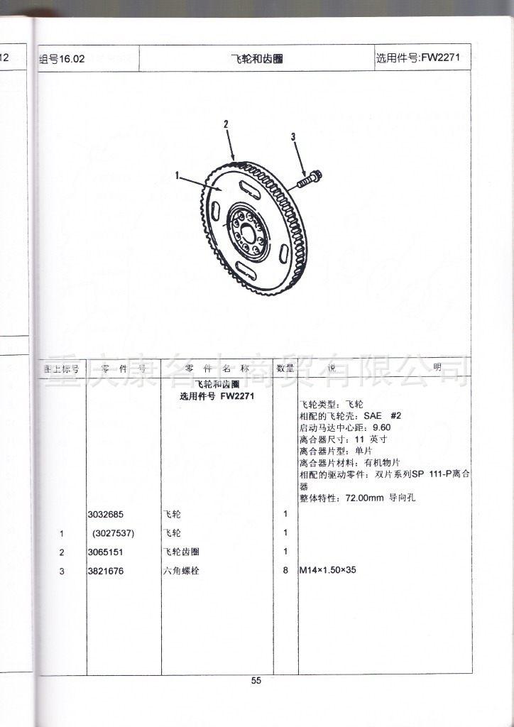 - 915-046-056康明斯M11零件目录3672081第055页飞轮和齿圈图表